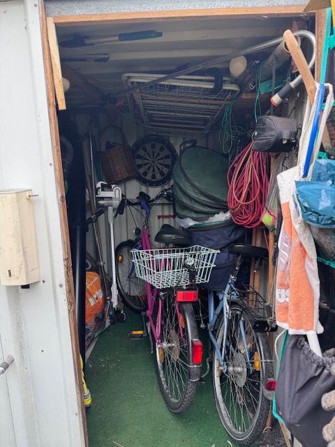 Kühlschrank / zwei Fahrräder / Elektro Rasenmäher / sämtliche Küchenutensilien / Grill / Werkzeug / Stühle und Tisch
